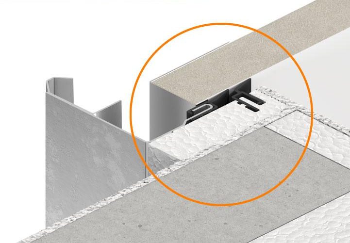 Распорка подготовлена для установки на вертикальный уголок и имеет место для дополнительной прокладки. Две прокладки обеспечивают лучшую герметизацию соединения. Использование жёсткого пенополистирола (EPS) при монтаже позволяет улучшить теплоизоляцию конструкции примерно на 30%, что на практике обеспечивает повышение теплоизоляции гаражных ворот на 20%.