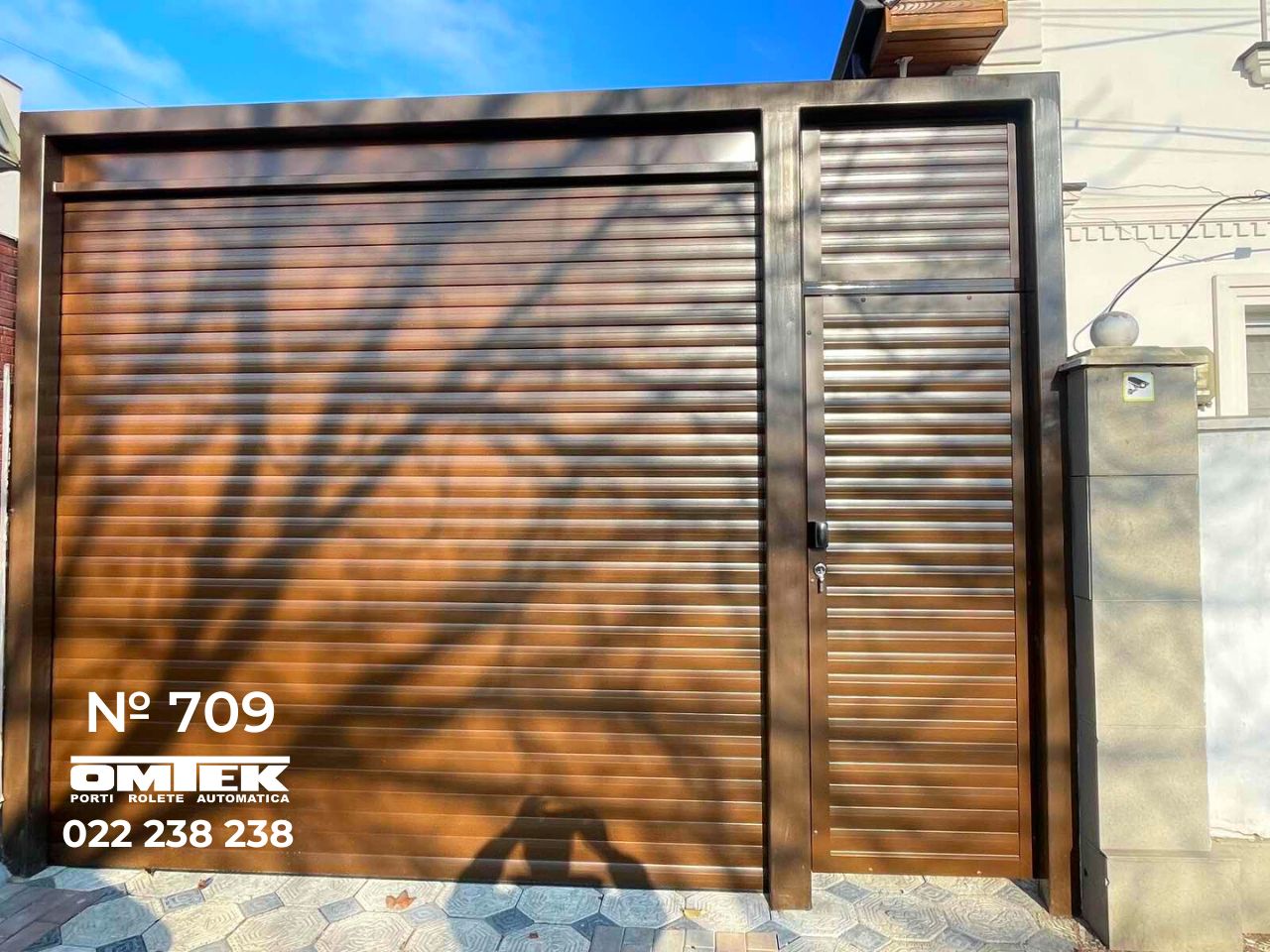 №709 Ролетные ворота въезд во двор и калитка, цвет Коричневый (1 фото)